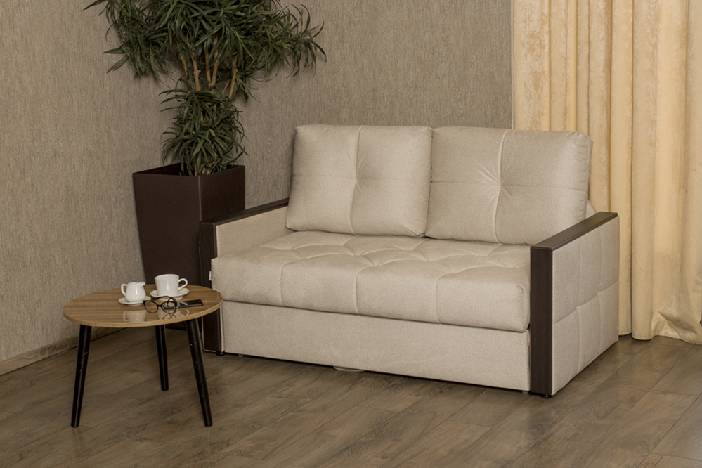 Компактные линейные диваны с простым силуэтом прекрасно подходят для гостиной или кабинета. Обивка из ткани, микровелюра или экокожи сохраняет светлый тон и надёжность конструкции.