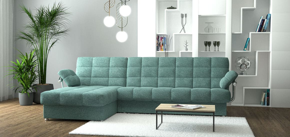 Многие угловые диваны снабжены механизмами «дельфин», «еврокнижка» или «аккордеон». Они легко превращаются в просторное спальное место, а дополнительные ящики удобны для хранения постельного белья и пледов.