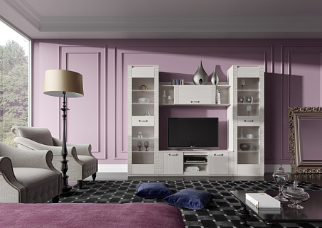 Выбор для просторной гостиной или для семейного хранения: больше закрытых секций, проще разнести вещи по категориям и не держать их на виду. Такие комплекты часто воспринимаются спокойнее, потому что хранение распределено по длине, а не сжато в одном месте.