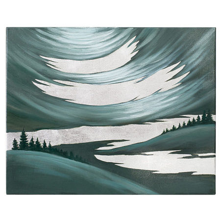 - В помещениях с тёплым освещением гармонично смотрятся картины с природными мотивами и мягкими оттенками.
