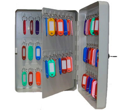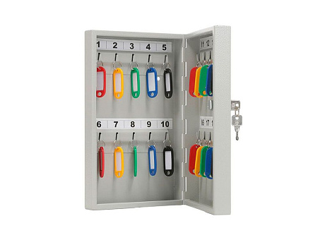 В каталоге предлагаются металлические ключницы, предназначенные для размещения ключей от кабинетов. Конструкция оборудована крепежными элементами для фиксации на стене и замочной системой, предотвращающей