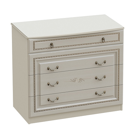 Отличительная черта неоклассической мебели — роскошный и одновременно сдержанный вид. Комоды в стиле неоклассика имеют преимущественно светлые оттенки — бежевые, белые, серые. Часто они украшены резьбой и декоративными элементами. Предлагаем модели с ажурной фрезеровкой на фасадах, украшенные глиттерным рисунком и кристаллами. Все они имеют удобные столешницы, на которые можно разместить фоторамки, сувениры и другие аксессуары.