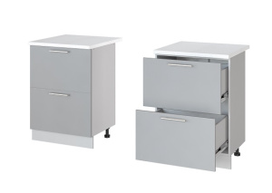 Сочетание простых форм и функциональности. Объёмное тиснение и рельефные рисунки на фасадах подчеркивают современный стиль гарнитура, его оригинальный вид. Набор включает шкафы, столы и бутылочницу, обеспечивая достаточно пространства для хранения кухонных принадлежностей.