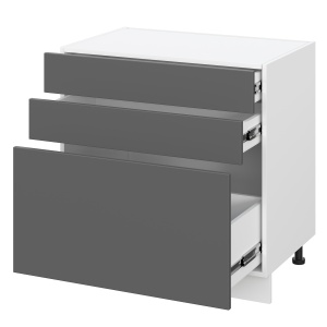 Современная кухня «Бронкс» привлекает внимание стильными фасадами в цвете «Доломит» и фрезерованными ручками «HAND-LESS». Шариковые направляющие обеспечивают легкое выдвижение ящиков. Поверхность фасадов устойчива к разным загрязнениям и за ней легко ухаживать. Собирается кухня из модулей по размерам комнаты.