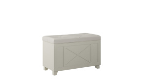 Крышка банкетки — откидная, с мягким элементом. Буковые опоры покрыты эмалью в цвет корпуса;
