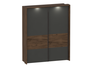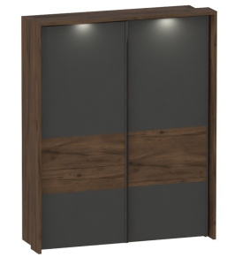 Элегантный комплект мебели, сочетающий графитовые фасады с благородной древесной текстурой. Кровать имеет подъемный механизм, а также вместительный короб для хранения одеял, подушек и других необходимых вещей. Фасад вместительного шкафа украшен эффектной фрезеровкой с объемным 3D-рисунком.
