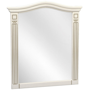 Фасады мебели декорированы элегантной фрезеровкой с эффектом патины и медальоном, на котором изображены розы. Для удобства использования ящики оснащены темными металлическими ручками, имитирующими ковку.
