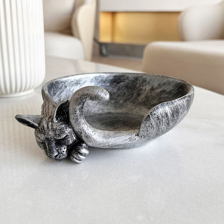 подставка декоративная д/мелочей Спящий кот античное серебро