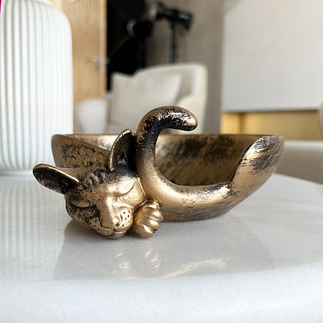 подставка декоративная д/мелочей Спящий кот бронза