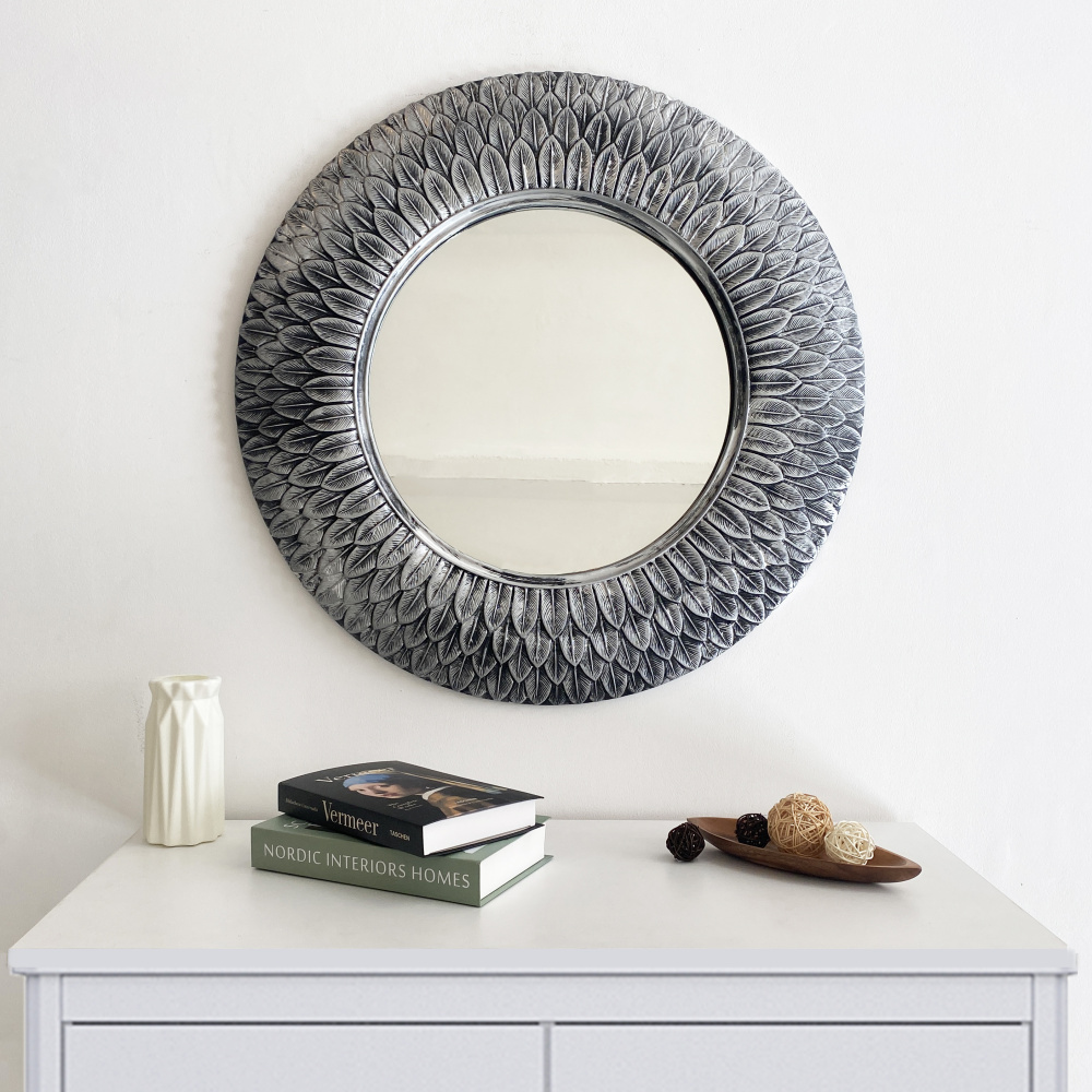 Настенное круглое зеркало "Солнце" в раме – яркая декоративная деталь, которая дополнит и украсит Ваш интерьер. Настенное зеркало будет достойно смотреться в ванной комнате, спальне, гостиной, прихожей или офисе.